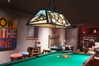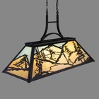 3 Lights Pool Table Light for 7' 8' Pool Table, Rustic Dining Room Chandelier for Kitchen Island, Billiard Light Hanging Ceiling Light Fixture for Game Room, Billiard Room This billiard lamp features a black frame and blue and white lamp shade design, the farmhouse rustic chandelier will add a lot of nature feeling to your space. Style : American, Farmhouse, Industrial, Modern, Country Rustic, Classic, Vintage, Traditional, Art Deco Asssembly Needed : YES Bulb Included : NO Specification Fixture Type : Chandelier Material : Metal, Acrylic Lamp Shade Dimension : 43.3“ L x 18.6” W x 11.6” H Net Weight : 26 lb Hanging Chain :3.93"- 43.3'', Height Adjustable Light Source : 3 x E26 (Max. 60W per bulb) Compatible Bulb Type : LED, CFL, halogen, incandescent, fluorescent Compatible Ceiling Type : flat, sloped, vaulted ceilings Package 1 x pool table light 2 x Hanging chain 1 x Instruction manual Vintage Billiard Table Light: The design of the billiard light is inspired by nature, incorporating elements of mountains and trees. When illuminated, soft light is projected onto the table through a rectangular lampshade, ensuring adequate illumination and avoiding glare Tiffany Chandelier Dimensions: The 3-light pool table lamp measures 43.3" L x 18.6" W x 11.6" H, with an adjustable chain length of 43.3". It is suitable for flat, sloped ceilings. Additionally, it is suitable for 7- to 8-foot billiard tables Billiards Light Fixture Bulb: The billiard lamp requires 3 x E26 bulbs (max 60W per bulb), compatible with LED, CFL, halogen, incandescent, and fluorescent bulbs. It is capable of being dimmed with compatible dimmable bulbs. (Bulb and dimmer switch are not included) Widely Used: This billiards light for pool tables is not only suitable for rustic-style billiard rooms, game rooms, men's caves, and cue clubs, but it can also serve as a dining room chandelier over modern kitchen islands, dining tables, and more Assembly Needed: The pool table light fixture comes with mounting hardware and a detailed installation instruction manual for easy instruction manual, easy to install, just take some time to get a practical pool table chandelier