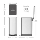 Upgrade your waste management with the 13.2 Gallon Trash Can. This trash can features a soft-close lid that closes quietly without slamming, making it perfect for households with children or pets. The removable ring liner makes changing trash bags mess-free, saving you time and effort. The fingerprint-proof commercial stainless steel surface stays clean longer and is easy to maintain, ensuring your kitchen, bathroom, or office remains looking its best. The sturdy foot pedal allows for hands-free operation, making it convenient for you to dispose of your waste. For regular cleaning, simply use a damp microfiber cloth. The non-skid base keeps the trash can in place, even when the lid is opened, ensuring that it won't tip over or move around. With a slim design, this trash can is perfect for small spaces, making it ideal for use in kitchens, bathrooms, and offices. Invest in the 13.2 Gallon Trash Can today and enjoy a cleaner, more convenient waste management solution. Soft-close lid closes quietly without slamming Removable ring liner makes trash bag changes mess-free Fingerprint proof commercial stainless steel stays clean longer Sturdy foot pedal keeps your hands free For regular cleaning, use a damp microfiber cloth Non skid base keeps your trash can in place 13.2GAL / 50L Ideal for Kitchen, bathrooms, offices Slim design If you wish to purchase a greater quantity than available, please contact us. Shipping & Handling: We ship only to the Continental 48 US States. Be known, we do not ship to Alaska, Hawaii, APO/FPO, PO Boxes, or any US Protectorates. Return Policy: We offer a 30 day return policy from the receiving date. If you have any problem with your purchase please contact us first! We strive to make every customer experience positive and will work with you until you are satisfied. THANK YOU FOR YOUR BUSINESS!!