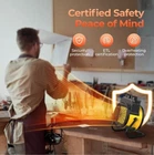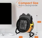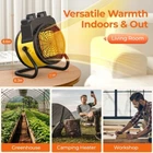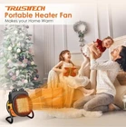TRUSTECH Greenhouse Heater is a 1500W PTC Fast Heating indoor and Outdoor Space Heater with a Forced Air/Fan Heating System. It is designed for portable use on the floor, desk/tabletop, or cabinet. The heater has a light yellow color, operates on 120V, and offers variable heat settings. The model is ptc-1500r.