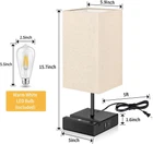 Store New Arrivals Add to Favorite View Feedback Contact Table Lamp, 3-Way Dimmable Table Lamp, Touch Control, Type C/USB Charging Port, 1 AC Outlet, Linen Fabric Bedside Table Lamp for Bedroom Living Room (Bulb Included) Description Light Source Type LED Style Table Lamp-1 PACK Number of Items 1 Power Source Corded Electric Number of Light Sources 1 Control Method Touch Is Electric Yes Batteries Included? No Lighting Method LED Mounting Type Tabletop Lamp Type Table Lamp Number of Pieces 1 Room Type Living Room Bulb Shape Size S14 Efficiency Energy-efficient Product Dimensions 6.5"D x 6.5"W x 10"H Material Linen, Metal Installation Type Tabletop Specific Uses For Product Reading Included Components Bulb Indoor/Outdoor Usage Indoor Brightness 800 Lumen Water Resistance Level Not Water Resistant Batteries Required? No Item Weight 2.7 pounds Connectivity Technology USB Connectivity Protocol Homeplug Special Features Typle-C/ USB, 1 AC Outlet Charging Port, Touch Control Table Lamp, 3-way Dimmable Special Feature Typle-C/ USB, 1 AC Outlet Charging Port, Touch Control Table Lamp, 3-way Dimmable Bulb Base E26 Shade Color warm white, ivory Color Temperature 2700 Kelvin Color Warm White Wattage 6 watts Is Cordless? No Is Waterproof False Shape Rectangular Voltage 120 Volts (AC) Recommended Uses For Product Reading Shade Material Linen Switch Type Touch [3 Way Dimmable Touch Bedside Lamp] Our touch-control table lamp allow you to make quick changes to three different brightness, When you want to turn it on, or off, adjust the brightness, just touch the button of our bedside lamp base can be easily achieved [Energy Saving] The bedside lamp includes 1 ST64 LED Edison bulb (800 Lumens), which emits the same level of illumination as the 60W incandescent bulb. This bedside lamp saves up to 90% on your energy bill, with no flicker or buzzing. Safe for family’s eyesight [Lamps with USB Port and Outlet] Besides illumination, this modern table lamp for the bedroom is equipped with USB, Type-C charging ports (5V/2.1A), and an AC outlet for fast charging for our touch lamp. Getting your phones, laptops, and so on. The USB table lamp also has a phone stand and is convenient to put your mobile phone on [Minimalism Decor for Your Spaces] Our touch bedside lamp are small and perfect to light up anywhere in your house. The nightstand lamp is topped with linen lampshade, and has metal base, adding texture to your spaces. A ideal touch lamp for bedrooms, living room, etc [Stablely and Easy Installation] Non-slip black base makes the bedside lamp stable and prevents it from tipping over easily by kids or pets. Only 4 steps to assemble the nightstand lamp with no tools Product Description Simply touch the desk lamp's button to dim the light level to suit your needs. Low Brightness Perfect for nightstand lamps/nurseries at night, and no worry to bother your family Medium Brightness Ideal for daily use lamps, romantic meals, and watching movies High Brightness Excellent for reading, using as a USB table lamp for studying or work, playing electronics, or family life No more searching for outlets or sacrificing desk space. Our lamp's USB port is cleverly hidden on the back, ensuring a sleek, streamlined look while providing efficient charging functionality. 1 Table Lamp for Bedrooms 2 Table Lamp for StudyRoom 3 Table Lamp for LivingRoom 4 Table Lamp for Any Place Easy Installation In just a minute you'll have a beautiful USB desk lamp that perfectly matches your bedroom Desk lamp with stand function The stand function here is unique, protecting your eyes when using electronic products under bright lights USB A + C Charging Ports This table lamp brings you a lot of convenience. Has a built-in USB charging port that can easily charge multiple electronic products Natural Linen Fabric Premium linen material is not cheap, looks great and last long Popular products Add to Cart Add to Cart Add to Cart Add to Cart Add to Cart Add to Cart Customer Reviews 4.2 out of 5 stars 226 4.2 out of 5 stars 44 4.2 out of 5 stars 18 4.2 out of 5 stars 24 4.5 out of 5 stars 60 4.3 out of 5 stars 98 Price $25.99 $ 25 . 99 $26.99 $ 26 . 99 $27.99 $ 27 . 99 $31.88 $ 31 . 88 $19.99 $ 19 . 99 $16.59 $ 16 . 59 Max Loading 300W 1800W 300W 1800W 1000W 1000W Power 125VAC, 60Hz 125VAC, 60Hz 125VAC, 60Hz 125VAC, 60Hz 125VAC, 60Hz 125VAC, 60Hz Temperature Range 32° F-104° F(0°C-40°C) 32° F-104° F(0°C-40°C) 32° F-104° F(0°C-40°C) 32° F-104° F(0°C-40°C) -4° F-122° F (-20° C-50° C) -4° F-122° F (-20° C-50° C) Hub Required — Z-Wave Hub Z-Wave Hub Z-Wave Hub — — Set Schedules/Timers ✔ ✔ ✔ ✔ ✔ ✔ Works with alexa google home ✔ ✔ ✔ ✔ ✘ ✘ Voice Control ✔ ✔ ✔ ✔ ✘ ✘ ABOUT US We offer the best prices around on high quality products. Our E-store includes media such as books, movies, music and games while offering electronics, toys, sporting apparel, clothing, tools, general home, garden items and more. SHIPPING We are always working hard to ensure your package arrives as soon as possible. Please understand that some factors like weather, high postal traffic, and the performance of shipping companies are outside of our control. We offer free shipping to the lower 48 states and ship within 2 business days of payment, usually sooner. We do not accept P.O. Boxes. Please provide a physical address. For shipping outside of the continental USA, we only use eBay's Global Shipping Program.The item is shipped to KY and then sent to the rest of the world. International customers are responsible for all duties and taxes. Continue to check out in order to calculate costs for shipping the item to your country. Messages regarding eBay's Global Shipping Program MUST be directed at eBay EXCLUSIVELY. RETURNS We offer a 30-Day Return Policy on items which you are not completely satisfied with. You have the option for a full-refund or an exchange of the item. No returns are available on items shipped outside of the US