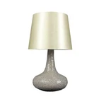 SIMPLE DESIGNS Madison 14.17 in. Champagne Mosaic Tiled Glass Genie Table Lamp with Satin Look Fabric Shade Add some sparkle to your home with this gorgeous and unique genie table lamp. The mosaic tiled base resembles a genie bottle. A matching champagne colored shade completes the whimsical look. The chic style is perfect for any modern decor. Also available in black, purple and red. Gorgeous mosaic tiled base Matching fabric shade Uses 1 x 40-Watt E12 candelabra base bulb (not included) Dimensions: L: 8.25 in. x W: 8.25 in. x H: 14.17 in. Available in additional color options Elegant and contemporary look Perfect accent piece for any room in your home Dimensions Product Depth (in.) 8.25 in Product Height (in.) 14.17 in Product Width (in.) 8.25 in Shade Diameter (in.) 8.25 Details Base Color Family Beige California Title 20 Compliant Yes Compatible Bulb Type Incandescent Damp/Wet Rating Dry Rated Features No Additional Features Fixture Color/Finish Champagne Fixture Material Resin Harp Type No Harp Included No Additional Items Included Lamp Base Material Resin Lamp Shade Material Fabric Lamp Shape Urn Light Bulb Base Code E12 Light Bulb Type Included No Bulbs Included Maximum Bulb Wattage 40 Maximum Wattage (watts) 40 Number of Bulbs Required 1 Number of Lights 1 Light Power Source Plug-In Primary Switch Type On/off Product Weight (lb.) 2.29 lb Recommended Light Bulb Shape Code B10 Shade Color Family Beige/Bisque Shade Fitter Type None Shade Shape Empire Style Contemporary Switch Mechanism Rotary Certifications Certifications and Listings UL Recognized