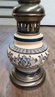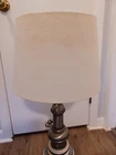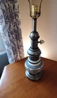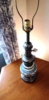 This vintage lamp features a beautiful blue floral pattern on an antique white and cobalt blue color scheme. The lamp has a 7" diameter and is made of porcelain, pewter, and brass. It has a bulbous body and an elongated neck that give it a unique design. The lamp is a corded electric type with knob control and a black cord color. It was manufactured in the United States during the 1960s and the bulb tube has been upgraded. The lamp is similar looking to the Stiffel's style lamps and is perfect for collectors of lamps and lighting. Shade is included Vintage appeal piece *Choose your shipping option of UPS or USPS service *