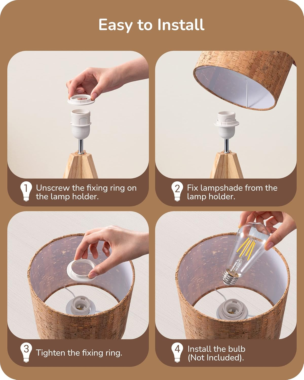 Store New Arrivals Add to Favorite View Feedback Contact Table Lamp, Dimmable LED Floor Lamp with Remote Combo, Natural Wood Description Light Source Type LED Style Rustic Modern Number of Items 1 Power Source Corded Electric Number of Light Sources 1 Control Method Remote Lighting Method Adjustable Lamp Type Table Lamp Controller Type Remote Control Room Type Nursery Bulb Shape Size A19 Material Wood, Linen Finish Type Polished Included Components Remote Control Indoor/Outdoor Usage Indoor Connectivity Technology IR Special Features Dimmable Special Feature Dimmable Shade Color Brown Mounting Type Tabletop Color Wood Is Cordless? No Is Waterproof False Shade Material Linen, Wood Finish types Polished Switch Type Remote [Sturdy & Elegant Decor] EDISHINE small desk lamp with natural wood tripod light pole, tripod structure is more sturdy, not easy to tip over, providing stable and reliable lighting; bark drum linen lampshade enhanced its elegant appearance, bringing fresh forest style decor; suitable for retro, medieval, rustic and other indoor styles [Bark Linen Lampshade] Experience the beauty of nature, our bedside lamp crafted from polished natural wood bark ensures a smooth touch, and emits a warm and gentle glow, creating a cozy and inviting atmosphere; free from glare, suitable for reading and study, also serves as a night light or nursery lamp [Dimmable & 7 CCT Adjustable] Adjust the brightness from 10-100% to provide comfortable light, allowing you to customize the lighting according to life or work needs; 7 color temperature from 2700 to 6000K to switch the lighting from warm, white to cool light; creating glamourous ambiances for your family [RF-433 Remote Control] The minimal floor lamp can be controlled smoothly by RF-433 remote control within 49ft, to select 7 color temperatures and 7 brightness levels; one click to enter night light mode of brightness 30%, and the memory function can save your last setting [Easy to Assemble & Stable] Takes only 3 minutes to screw column lamp onto base then connect adapters and spin lock; made of solid wood, the square compact base plate keeps the bedside lamp sturdily in place and wobble free, prevents it from tipping over when you move it or have an accident EDISHINE Table Lamp, Dimmable LED Floor Lamp with Remote Combo, Natural Wood ABOUT US We’re dedicated to bringing you great deals on quality products. From home décor and garden essentials to tools, hardware, and pet accessories, our store has something for everyone — all at prices you’ll love. SHIPPING We ship all orders directly from the USA for fast, reliable delivery. Most items ship within 1 business day and include free shipping to the lower 48 states. For international orders, we use eBay’s Global Shipping Program — simply continue checkout to see costs, duties, and taxes for your country. FREE RETURNS We offer a 30-Day Return Policy on items which you are not completely satisfied with. You have the option for a full-refund or an exchange of the item. CUSTOMER SATISFACTION We do everything we can to ensure every customer is 100% satisfied. If something isn’t right, just send us a message — we’ll make it right quickly!