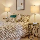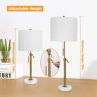 Table Lamp Modern Set of 2, 22" and 30" Height Adjustable Pull Warm Light Product Details Style: Modern Brand: Qingmiao Color: Warm Light Product Dimensions: 11"D x 11"W x 30"H Special Feature: Pull Chain, Height Adjustable, 3-Way Dimmable, Corded Light Source Type: LED Finish Type: Polished Material: Marble, Fabric, Metal Lamp Type: LED Room Type: Bedroom Shade Color: White Shade Material: Fabric Base Material: Marble Recommended Uses For Product: Decoration Power Source: Corded Electric Shape: Bulb Switch Style: Pull Chain Theme: Marble,Modern Included Components: 2 x Marble Lamp Base, 2 x Golden Lamp Pole, 2 x Lampshade, 4* KD Lampshade Rings, 2 x (Harp Holder+Finial Cap Knobs), 2 x 3000K LED E26 Bulb, 1 x User manual Switch Installation Type: Pole Mount Wattage: 60 watts Item Package Quantity: 2 Manufacturer: Qingmiao Item Weight: 9.88 pounds Product Dimensions: 11 x 11 x 30 inches Assembled Height: 30 inches Assembled Length: 11 inches Assembled Width: 11 inches Finish Types: Polished Maximum Compatible Wattage: 60 Watts Voltage: 120 Volts (AC) Specific Uses: Suitable for bedroom, living room, nightstand, foyer, entryway, dorm, dining room, office, study room Special Features: Pull Chain, Height Adjustable, 3-Way Dimmable, Corded Batteries Included?: No Batteries Required?: No Luminous Flux: 600 Lumen Color Temperature: 3000 Kelvin Style: Modern Brand: Qingmiao Color: Warm Light Product Dimensions: 11"D x 11"W x 30"H Special Feature: Pull Chain, Height Adjustable, 3-Way Dimmable, Corded Height Adjustable Gold Table Lamps: Fresh style modern table lamps set of 2, its height can be adjusted between 22” and 30”, 11" diameter lampshade x 6" diameter base, taking less space, making them the perfect lamps for bedrooms, living room, kid's room, girl's room, office, and so on. 3-Color Temperature Table Lamps: the tall table lamps offer you 3 levels of brightness, you can easily adjust the brightness by the pull chain switch. Included 2 A19-6W bulbs, this gold table lamp with pull chain can meet you a variety of usage scenarios. Modern & Simple: the modern table lamps are designed with golden finishes, white marble base, supplemented by white linen fabric lampshades, soft light, adding elegance and stylish to your room. Easy to Install: the gold table lamp for bedroom need to be assembled manually, but don’t worry, you can easily complete it in just a few minutes. Tips: the lamp shade harp holder and final cap knob of the brass table lamps are located in the red packaging bag on the side of the package.