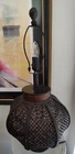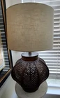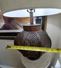 This lamp complimented my formal dining area with my plants and decor. The shade is not included. Light bulb not included. Add a touch of rustic/boho charm to your living space with this beautiful table lamp. Crafted from high-quality rattan/wicker materials, this lamp exudes a farmhouse and boho vibe that is perfect for any room in your home. The lamp stands at 26 inches tall and measures 10 to 12 inches in width, making it the ideal size for a table or countertop. This lamp is designed with a wall plug-in power source and operates at 120 volts. It was manufactured in China in 2012 and boasts a unique style that is sure to complement any decor. Whether you're looking to add a cozy touch to your porch, bedroom, living room, sunroom, or den, this table lamp is the perfect choice.