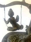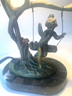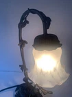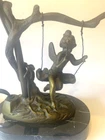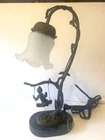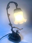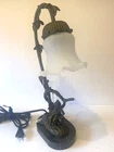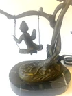 Table Lamp Tiffany style Marble Base Bronze Glass Shade cherub sitting on a swing. Invite Victorian beauty into your home with this floral shade accented with a romantic cherub sitting on a swing. The lamp's accents and base are hand-finished brass in a warm color. Estate find in good condition , some pink paint on glass shed (can removed by washing) see photos. Dimensions Approximately Overall 15.25'' H x 8'' W x 4.5'' D Marble Base 1 '' H x 6'' W x 4'' D Shade 3.5'' H x 4.25'' W x 4.25'' D Overall Weight 4.11 lb. Please review all pictures in the gallery before making your buying decision , you are buying exactly what you see in them.. Please don't forget to check out my other listing Thanks for looking.