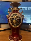 This stunning vintage table lamp features a beautiful Victorian design with a historical colonial couple, George and Martha. The lamp is made of high-quality porcelain material with a red color finish that adds a touch of elegance to any room. It has a knob control for an easy-to-use feature that allows you to adjust the lighting to your preference. The lamp stands at 12 inches tall and has one bulb lighting technology with one setting. It's an original piece from the 1950s, making it a great addition to any collection. The lamp is an antique product that is unisex and suitable for any department. This vintage table lamp is perfect for those who are interested in historical figures and vintage products.