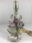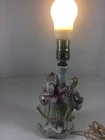 Table Lamp Victorian Man and Woman Hand Painted Japan Ceramic Vintage Gold Accents.