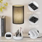 THREE USB CHARGING PORTS AND 3-PRONG STANDARD AC OUTLET: This table lamp has three USB charging ports (total 5V/3A output) which can charge your devices simultaneously and efficiently; The 3-prong power outlet (total Max 937W) can charge your laptop, printer and other small appliances at home or office conveniently.(Charging function can work whether the light is on or off.) MODERN BLACK METAL BASE WITH 2 PHONE AND PAD HOLDERS: This nightstand lamp is made of safe black metal base, presenting a modern look; two phone slots are helpful to hold your Pads, cellphones, or other devices while charging, keeping your nightstand, end table, office desk clean and neat WITH A MATCHING LINEN FABRIC SHADE FOR GREAT DECOR: This bedside lamp comes with a simple and fashion linen lamp shade, which creates a comforting atmosphere to protect your eyes while reading or working. It can be a nice decor to level up your living room, bedroom, guest room, office, study instantly A PERFECT AND USEFUL GIFT TO YOUR FRIEND OR FAMILY: This unique desk lamp is an ideal gift for your families and friends as Birthday, Thanksgiving, Christmas, New Year, Anniversary, or other festival gifts. They will be very pleased when receive this unique helpful lamp QUALITY WORRY-FREE: This USB table lamp has 12 months quality caring period, if you are not happy with the purchase, please contact us, we will make it right to you immediately