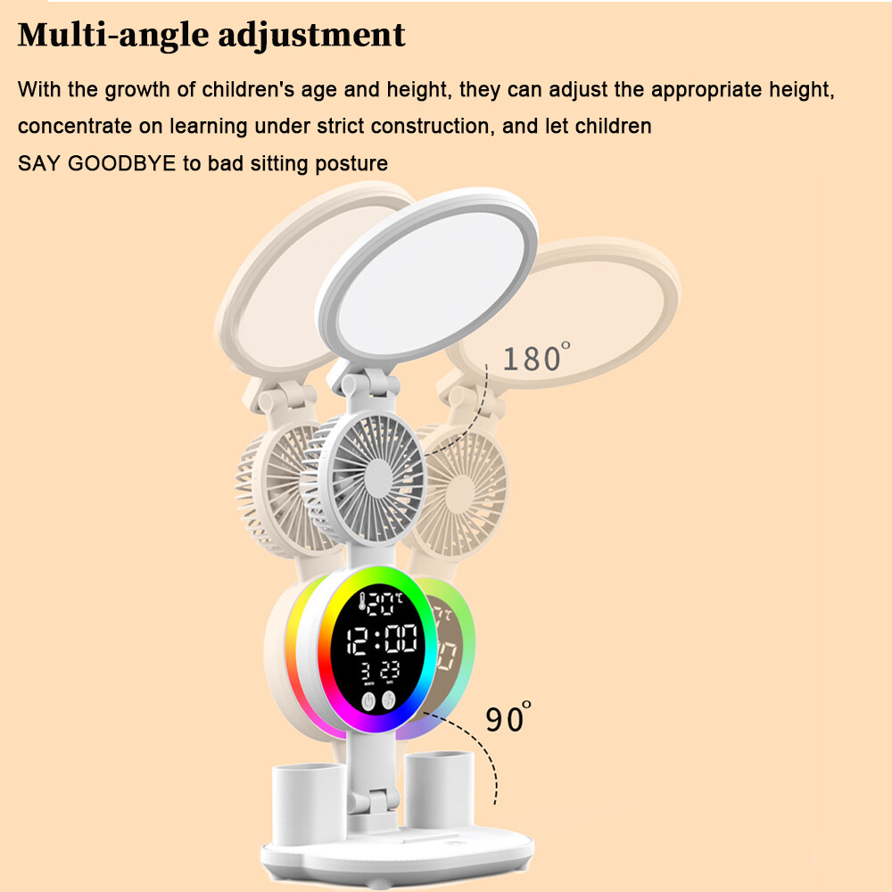 Herzlich willkommen PRODUCT DESCRIPTION Fan round head clock USB rechargeable LED study eye protection desk lamp intelligent LED display bedside lamp desk reading multi-function pen down lamp Features: * Intelligent LED display. It can display information such as temperature, time, year, week, date, etc. to enhance the concept of time. * No blue light eye protection. No flicker, no flicker, no ghosting, no dark area, better eye protection. * Three levels of color adjustment, stepless dimming. With 3000K warm yellow light, 4500K warm white light and 6000K white light. * Touch switch. It's easy and convenient to set the brightness level by swiping your finger on the trackpad. * Multi-angle adjustable, the light can be rotated 180° up and down, left and right, the light pole can be adjusted by 90°, and can be folded and stored to save space. * The mobile phone pen holder is designed to hold school supplies such as pens, as well as tablet computers and mobile phones. * Wide range of use. Flexible positioning for use in the office, bedroom, school and reading. Specification: Name: LED eye protection table lamp Brightness: touch three-position dimming Light Color: White/Warm White/Natural Light Voltage: 5V Power: 7W Battery capacity: 3200mAh Number of lamp beads: 40LEDs Color temperature: 3000-6500k Switch: touch switch Size: 120 * 180 * 320mm Color: White Packing included: 1 * LED Eye Protection Desk Lamp 1 * USB charging cable 1 * User Manual Note: 1. Due to manual measurements and slight color variations, please allow 1-3 cm (0.4-1.18 inches) difference to suit different display settings. 2. Due to the light and screen difference, the item's color may be slightly different from the pictures. Please understand. PRODUCT DISPLAY Shipping Free Shipping!And we only ship to US. We will use your PayPal account address for shipping! Items are usually shipped 1-3 business days after payment has been received.We do not ship on weekends and holidays. Sellers are not responsible for service transit time. Transit times are provided by the carrier, exclude weekends and holidays, and may vary with package origin and destination, particularly during peak periods. Payments PayPal is our preferred method of payments it's the quickest, easiest and most secure way to pay for your goods or services online. PayPal offers buyer and seller protection should there be a problem. Should there be a problem with payment please do let us know. Return and Refund We offer a full 30 day return exchange policy so buy with confidence. When returning items they must be in their original packaging with all parts and accessories included.The item package should also be in original and perfect condition.We do our best to process items as quickly as possible. Feedback C ustomer satisfaction is very important to us. If you have any problem with your order,please contact us and we will do our best to make you satisfied, please do not leave a negative feedback before we resolve your problem. We guarantee that your issue will be solved quickly. As long as you are happy with your purchase of , please leave us a positive feedback. Your feedback is very important to us it affects our search placement on eBay. We will leave a positive feedback for you in return automatically once we receive your feedback. On Feb 10, 2025 at 00:58:20 PST, seller added the following information: