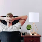 【Touch Control & 3 Ways Dimmable】 Our touch table lamp offers 3 brightness options (low, medium, high) to meet your different lighting needs. The touch control feature allows you to turn the dimmable table lamp on/off and adjust the brightness by simply touching anywhere on the metal. 【USB C & USB A Ports】 Our table lamp with usb port comes equipped with both USB-C and USB-A (5V/2.1A) charging ports. Whether the nightstand lamps is on or off, you can simultaneously charge 2 devices. It's suitable for charging smartphones, tablets, Kindle readers, power banks, smartwatches, mini humidifiers, and more. 【Dimension & Bulb Requirement】 The dimensions of our gold lamp are 15.16"H x 7.09"L x 7.09"W. The touch lamps for nightstand are easy to assemble with simple instructions. It requires E26 bulb, AC 120V, Max 60W. Includes a 7W LED bulb (equivalent to a 60W traditional bulb), you don't need to spend extra money on bulb. 【Widely Used】This gold desk lamp with usb charging port is suitable for decorating any space in your home or office, such as bedroom, living room, entryway, farmhouse, dorm, office, dining table, etc. It's small and doesn't take up much space. 【Geometric Metal Base Design】 The geometric metal base design of this modern table lamp enhances both the visual appeal and structural stability. It uniquely blends durability and style, making it not only a practical lighting fixture, but also a striking piece of art that adds a touch of modernity and artistic flair to any space. Its white fabric shade also adds a touch of modern elegance to your room.