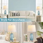 Menu 1. We require immediate payment. 2. We currently accept payment via eBay managed payments only. 3. Once payment is cleared, we will dispatch your shipment within 1-3 business days. Please refer to the "Shipping" tab for more information regarding shipping speed to your destination. Table Lamps Set of 2, 3-Way Lighting Modes Modern Table Lamps for Bedroom, Coastal Bedside Lamps with USB Port & Type C, Glass Nightstand Lamps, 24" Table Lamps for Living Room Bedroom Decoration Product description Elegant Modern Style: Blending natural elements with modern design, this coastal lamps set of 2 draws inspiration from coastal lifestyles, combining blue textured glass with a high-quality metal base to exude sophistication and modernity. The modern table lamps shade is made of soft fabric that emits a warm and inviting glow when illuminated. This bedside table lamps set of 2 effortlessly captures the essence of coastal modern style. 3 Way Lighting Modes: The table lamps for bedrooms set of 2 is adjustable with knobs and buttons. You can choose to light the top of table lamp, or the middle of table lamp, or both at the same time, according to your lighting needs. If you only have the middle of bedroom lamps on, this is the night light mode we set, the soft light makes it easier for you to fall asleep. This would be great nightstand lamps. Convenient Type C & USB Charging Port: Each side table lamps have 1 USB charging port and 1 type C charging port (5V/2.1A) on the base. After connecting the power cord, you can quickly charge mobile phones, tablets, laptops and other electronic devices regardless of whether the end table lamps are on or off. The bedroom lamps can not only meet your lighting needs, but also make your desktop more tidy and orderly. Quality First: The bedside lamps set of 2 features 2 energy-saving LED bulbs with no flickering or buzzing. This bedroom lamps set of 2 has undergone 40 stages of exquisite craftsmanship and 15 stages of meticulous polishing. Our pursuit of detail and high quality starts at the source, ensuring you receive a high-quality table lamp. This living room lamps set of 2 is definitely the perfect addition to your bedroom, office, or living room. Easy Installation & Excellent Service: Our bedroom lamps for nightstand come with installation instructions and can be installed in just a few steps. ads to the concept of "quality first", if t are any problems with the lamps for bedrooms set of 2, please contact us in time, we will provide you with the best solution within 24 hours. PLEASE MESSAGE US IF YOU HAVE ANY OTHER QUESTIONS, AND MANY THANKS FOR READING ALL OF THIS. Copyright ©#. All Rights Reserved.