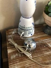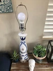 Tequila Bottle Lamp. Made from repurposed Clase Azul .750ml Tequila Bottle. Does not include lamp shade . Beautifull and perfect item to display on your bar countertop or your side table. Operates with domestic AC power. Two different styles available. Color : White & Blue , Materials: Ceramic / metal parts Approx. measurements: 18" H x 4.5" (w/o shade) Approximate weight:3.bs ******Lamp Shade is for picture taken only and is NOT included *****