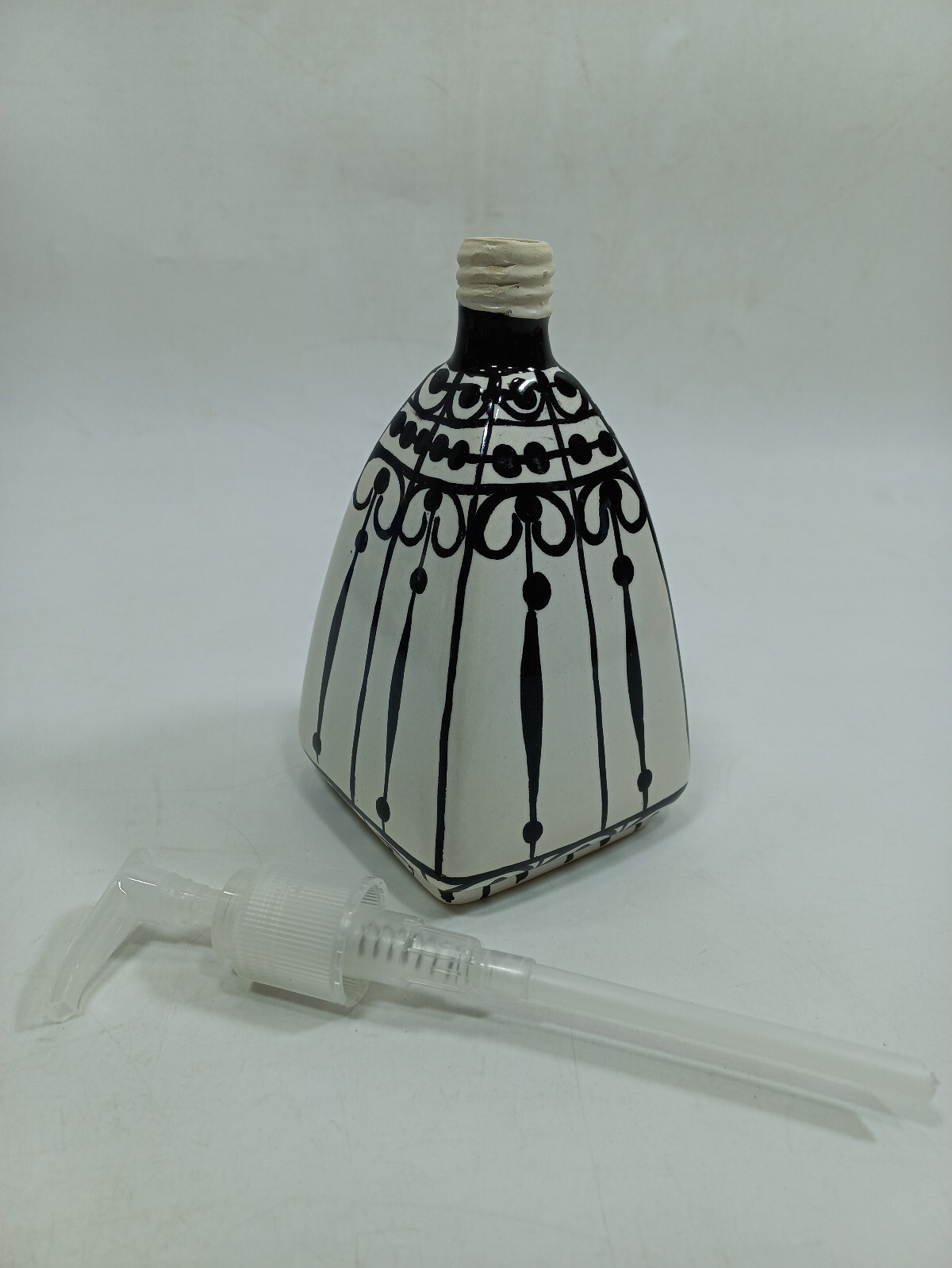 Beautiful Ceramic Soap Dispenser It measures: 7" X 3¼" X 3¼" inches. It is made of ceramic and plastic dispenser attached on its top. Perfect to accent your bathroom or kitchen. Made in Dolores Hidalgo, Mexico. Handpainted (unique). SKU: 52011