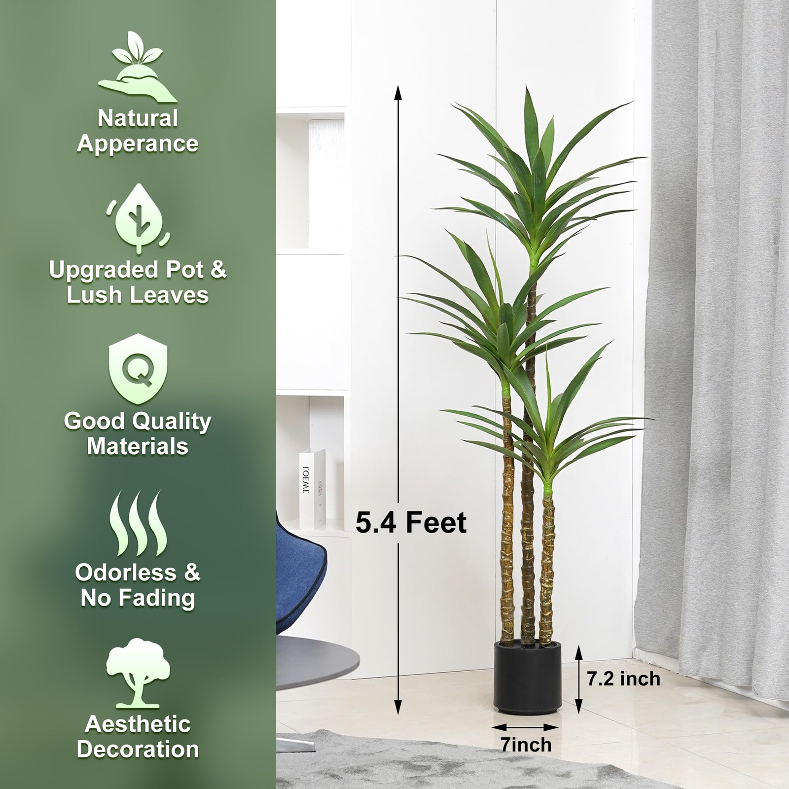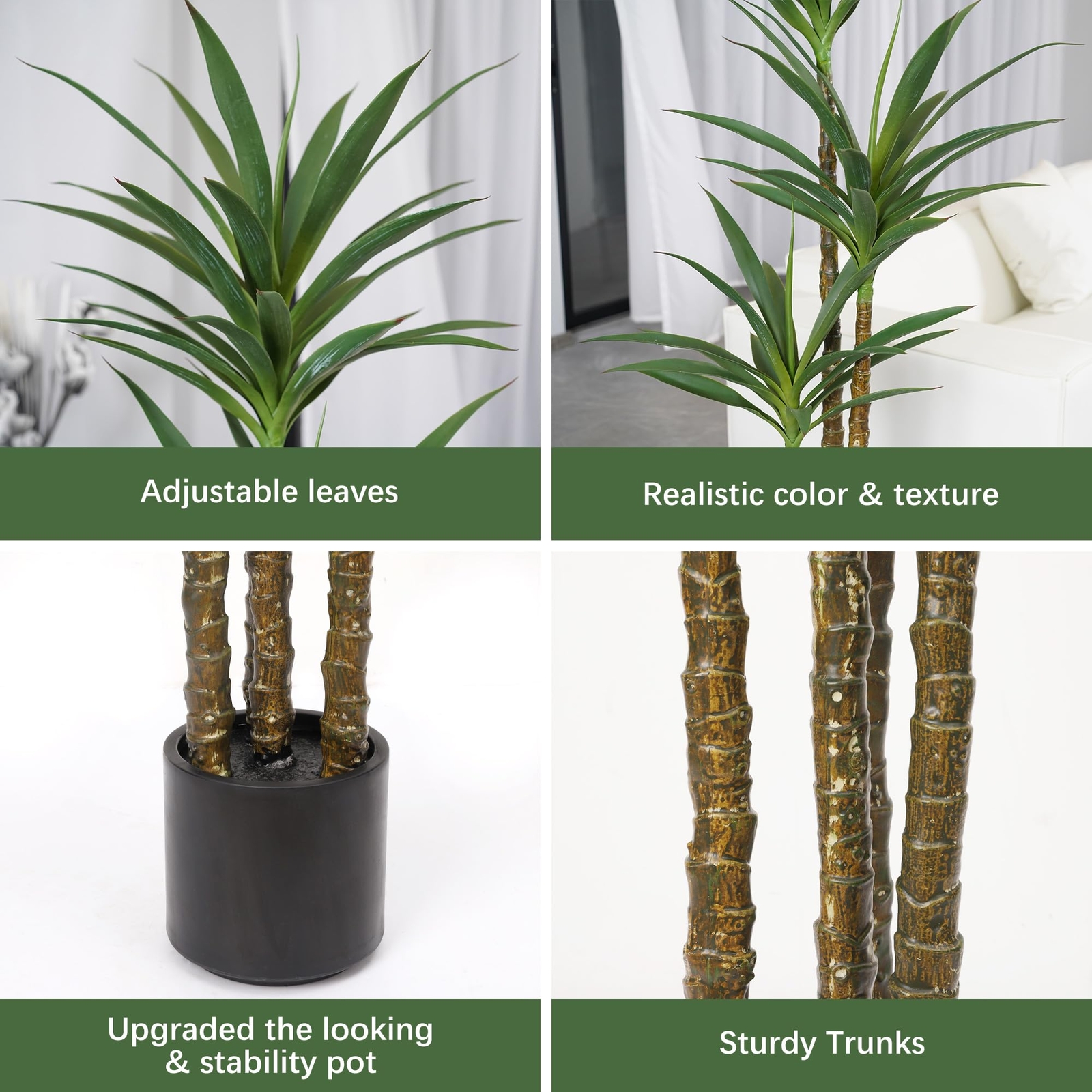 Lifelike Look & Good Quality: It looks as close to reality as possible. They are of the good quality in terms of color, texture and material. Carefully crafted to mimic the yucca plant is virtually indistinguishable from the real one. Agave Yucca Tree Flower Language : "Thriving day by day, Great auspicious". It's a great choice for a housewarming gift for friends, relatives, colleagues. All Year Round & Anyplace Decor : It compliments just about any setting and season. Perfect for placing in office, conference room, study room, living room, bedroom, outdoors, garden, porch, patio etc. Safe Materials & Simple Maintenance: All materials are flame-retardant treated, without any odor, Resistant to Sun, Water, Ice, Snow, and all Pests.So it is no problem even if placed in a sealed environment.If them happen to get a little dusty, simply wipe clean with a damp cloth or duster. : Professional decoration, bring a touch of aesthetic to your space.If you have any question, please feel free to contact us, we will serve you wholeheartedly.
