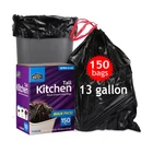 "Welcome to , your trusted source for high-quality trash bags and storage solutions. Our extensive range of products includes: 🟢 Drawstring trash bags in 13, 18, and 30-gallon sizes, perfect for kitchen, office, or outdoor use 🟢 Zip bags in 2-gallon, 1-gallon, quart, and snack sizes, ideal for storage, organization, and on-the-go convenience At , we prioritize durability, reliability, and ease of use. Our products are designed to make your life easier, whether you're managing household waste or storing food and supplies. With our commitment to quality and customer satisfaction, you can trust to deliver the best solutions for your needs." 🟣 ULTRA STRONG: 1 MIL Thick, Tear-Resistant 🔵TALL & ROOMY: 13 Gallon Capacity, Fits Most Pails 🟣 EASY CLOSE: Drawstring Seal for Secure Fit 🔵CLEAN & FRESH: Black, Unscented, No Fragrances 🟣VALUE PACK: 150 Count, Long-Lasting Supply 🔵GENEROUS SIZE: 2FT 2IN X 2FT 3 3/8IN, Ample Coverage 🟣TRUSTED QUALITY: , Reliable & Durable