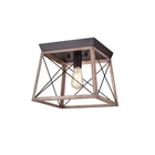 Description:This 1-light metal cage flush mount is an eye-catcher. The farmhouse-inspired light fixture features an open-cage frame composed of faux-wood with a brown oak finish. An X-brace design recalls old barn doors and farmhouse gates as it stretches across each side of the frame. The exposed bulb allow for maximum light flow to illuminate any room.Features:Lighting Type: Flush MountFixture Finish: Imitation Wood Grain+Oil Rubbed BronzeShade Material: MetalSetting: IndoorNumber of Lights: One (1)Bulb Type: (1) E26 60W (not included)HardwiredDimensions:Overall: L 12 x W 12 x H 10.3 inchesFixture: L 12 x W 12 x H 10.3 inches Free Shipping Over $49.99* Details Tamara Oil Rubbed Bronze 1-Light Open-Cage Metal Flush Mount Product Description: Description: This 1-light metal cage flush mount is an eye-catcher. The farmhouse-inspired light fixture features an open-cage frame composed of faux-wood with a brown oak finish. An X-brace design recalls old barn doors and farmhouse gates as it stretches across each side of the frame. The exposed bulb allow for maximum light flow to illuminate any room. Features: Lighting TypeFlush Mount Fixture FinishImitation Wood Grain+Oil Rubbed Bronze Shade MaterialMetal SettingIndoor Number of LightsOne (1) Bulb Type(1) E26 60W (not included) Hardwired Dimensions: OverallL 12 x W 12 x H 10.3 inches FixtureL 12 x W 12 x H 10.3 inches