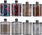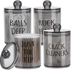 Packing: 2 pcs samll jars into 2pcs large jars, not just 2 jars, please check carefully when you receive the package Size - 10oz: With the lid, height = 4.4 inches, diameter = 2.7 inches Without lid: about 3.5 high, 12oz: With the lid, height = 4.8 inches, diameter = 3 inches Without lid: about 3.6 high Q tip Storage Organizer - Look like glass but are a really sturdy plastic and will not shatter, safe for kids Bathroom Accessories - Each floss pick dispenser has a removable lid and a wide mouth, easy to get them out These canisters are great looking and perfect for the vanity, bathroom and kitchen Product Description 4 Pack Bathroom Accessories Organizer - 12oz & 10oz Qtip Holder Dispenser for Cotton Ball Swab Pad Bathroom Storage Containers 4 individual Jar on the package Little things also allowed. Easy to get your fingers downet your fingers down Hard solid plastic,Looks just like glass - lightweight won't broken and hurt your kids Small size but can hold many things. Doesn't take too much space and it keeps things organized on your vanity 4 lids fit very tightly to keep form dust