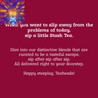 Store New Arrivals Add to Favorite View Feedback Contact Tea Christmas Eve Herbal Tea - Naturally Caffeine Free, Non-Gmo Project Verified Premium Tea with No Artificial Ingredients, 100 Count (BULK PACKAGING) Description Item model number 79740 Unit Count 100 Count Tea Variety Peppermint Flavor Name Christmas Eve Flavor Christmas Eve Manufacturer Tea Item Form Teabags Package Dimensions 8.35 x 7.56 x 5.79 inches; 1.1 ounces Size 100 Count (Pack of 1) TIS THE SEASON: Our exclusive Christmas Eve herbal blend is a delicious caffeine-free blend of mint, orange and sweet spices, perfect for a moment of peaceful reflection. This seasonal blend is delicious with milk, plain, or sweetened with sugar or honey. 100 COUNT BOX: Individually packaged bags guarantee every cup will taste as fresh as the day it was bagged, whether herbal, white, green, black, or oolong. Steep your tea according to instructions on box & enjoy every sip of premium quality Stash Tea Savour the Goodness: Our teas are made with top-quality ingredients that are meticulously chosen and blended to an artful balance. Every Stash Tea flavor is designed to turn your daily ritual into a joyful moment of tranquility THE STASH TEA COMPANY was founded in 1972, supplying loose herbal teas & bulk herbs to natural food stores. In 1975, we added bagged teas & began to sell a full line of traditional & herbal teas. Try our Chamomile, Peppermint, Earl Grey, Green Tea, & more Stash Tea: Brought to life in 1972 by 2 Portland hippies, we believe that tea is an opportunity to excite the senses and surprise your taste buds with a diverse range of bold flavors Box of 100 tea bags, great bulk size for foodservice or restaurants Created especially for the holidays, this is a festive herbal blend of mint and sweet spices Relaxing and fragrant this holiday tea can be drunk year round Kof-K Kosher certified, caffeine free, ships in Frustration Free Packaging Blended in the USA, with natural ingredients from around the world From the manufacturer Products made for teaheads like you Wellness Driven by a fervent love for combining herbs, spices, and botanicals, our mission is to uplift the mind, body, and soul through revitalizing tea blends. Turns out, you can sip your way to happiness. Premium Take a sip of luxury with our Premium line of teas. Made with high quality tea from some of the finest tea estates around the world. Holiday Get into the spirit of the season with our line of Holiday Teas. With flavors reminiscent of your favorite holiday moments, you’ll love creating new memories with your loved ones as you sip these teas. Loose Leaf Sourced around the world and blended in Oregon, we offer premium loose-leaf tea for every mood to satisfy any tea aficionado. Brew in a strainer or tea press for a truly remarkable cup of tea. ABOUT US We offer the best prices around on high quality products. Our E-store includes media such as books, movies, music and games while offering electronics, toys, sporting apparel, clothing, tools, general home, garden items and more. SHIPPING We are always working hard to ensure your package arrives as soon as possible. Please understand that some factors like weather, high postal traffic, and the performance of shipping companies are outside of our control. We offer free shipping to the lower 48 states and ship within 2 business days of payment, usually sooner. We do not accept P.O. Boxes. Please provide a physical address. For shipping outside of the continental USA, we only use eBay's Global Shipping Program.The item is shipped to KY and then sent to the rest of the world. International customers are responsible for all duties and taxes. Continue to check out in order to calculate costs for shipping the item to your country. Messages regarding eBay's Global Shipping Program MUST be directed at eBay EXCLUSIVELY. RETURNS We offer a 30-Day Return Policy on items which you are not completely satisfied with. You have the option for a full-refund or an exchange of the item. No returns are available on items shipped outside of the USA. PAYMENT We accept PayPal. CONTACT US This page content is yet to come Please ad us to your favorite seller and visit again later Thank You CUSTOMER SATISFACTION We try our very best to make sure every customer is completely satisfied. If there's a problem, message us! We're happy to help. WE ACCEPT