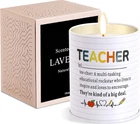 【Best Themed Teacher Gifts】-We believe that every teacher is a big shot in our hearts,Just like the words printed on this teacher's candle"A multi-tasking educational rockstar who livesinspire and loves to encourage""They're kind of a big deal" 【Teacher Appreciation Gifts for Any Occasion】-Unique teacher appreciation gifts on Christmas,Thanksgiving,Teacher's Day,Teacher Appreciation Week,Valentine's Day and Teacher Birthday,Teacher Retirement,students graduation gifts for teachers,best gifts for preschool teacher,new teacher,daycare teacher,kindergarten teacher,art teacher,elementary school teacher,music teacher,professor and more,arewell,back to school,end of year teacher gifts 【100% Natural Soya Wax】-The teacher candle is made of 100% natural soy wax, cotton wick and natural essential oils, which does not produce black smoke and has no pungent odor. It is a healthy, environmentally friendly and safe candle. Soy wax burns slower, cleaner, more environmentally friendly, burns more fully and burns longer. Anyone who loves candles will love the humor and quality of this funny candle 【Burning for 50 hours】-10 oz thank you teacher candle can burns for 50 hours, burns time is 30%-50% longer than other waxes. At 2-3 hours of use a day, it can be used for up to 2-3 weeks. When lit, the strong floral scent helps people feel relaxed and happy while working, showering, yoga, meditating and at bedtime for a better sense of sleep 【Reusable】-When the teacher lavender candle are used up, the jars can be reused as vases, pen holders, containers, accessories, decorations, and anything else you like to decorate, they are perfect home decorations, and the perfect addition to bathrooms, bedrooms, kitchens, living rooms, offices and more. Congratulations! The gift you gave will last forever and she will collect it forever! This is crazy