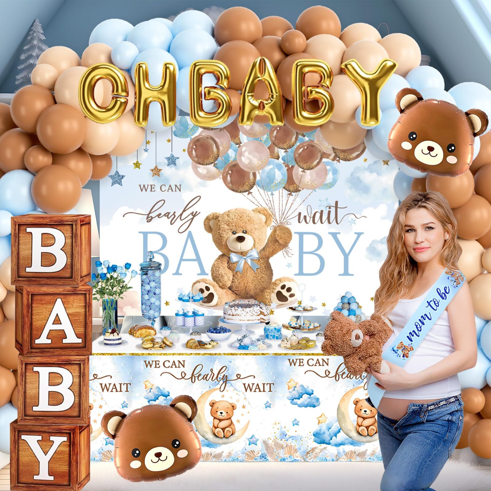 A Heartwarming Welcome: This kit is centered around a cuddly theme and infuses the party with a sense of comfort and love. The gentle presence of teddy bears brings a touch of sweetness and expectation. We Can Bearly Wait to see the baby boy Teddy Bear Baby Shower Decorations: 100 x latex balloons, 2 x bear foil balloons, 1 x 'OH BABY’ foil balloons, 1 x backdrop, 1 x tablecloth, 4 x balloon boxes, 1 x 'mom to be’ sash, balloon strip, glue dots, ribbons Easy to Assemble: The teddy bear baby shower decorations are designed for easy setup with a balloon strip, glue dots, and ribbons included, making it convenient for you to create a stunning balloon arch or centerpiece with minimal effort Versatile Decoration for Multiple Occasions: These teddy bear decorations are perfect not only for baby showers but also for first birthdays, gender reveal parties, and other baby-themed events Satisfactory Customer Service: If you need any assistance or are unhappy about this purchase, please do not hesitate to contact us. We will try our best to solve the problem in time. This product is from brand Hombae