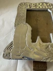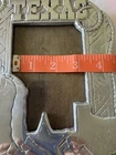 The product is a pair of Texas-themed picture frames in silver tone, featuring a Western style with elements such as boots, flags, and stars. The frames are rectangular in shape, measuring 6” in width and 8” in height, and accommodate 3 x 5 photos for full frames sized 6”x8”. Made of cast polished aluminum, the frames have an ornate design with a polished chrome finish. Suitable for all occasions, these frames are perfect for all ages and are suitable for portrait orientation. A unique and stylish addition to any home décor, these frames capture the essence of Texas with their Texas Map, Boot, Lone Star, Wagon Wheel, and Lariat themes.