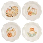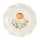 Leave your guests thankful, grateful and stuffed with our Stacked Pumpkins Salad Plate. The ceramic salad plate is made of stoneware. The plate features a ruffle edge. The plate features a stunning pastel Fall image in the center. The plate is dishwasher safe. The plate measures 8" in diameter. This plate is great for Thanksgivings and Friendsgivings. Mix and match with other styles. Leave your guests thankful, grateful and stuffed with our Stacked Pumpkins Salad Plate The ceramic salad plate is made of stoneware. The plate features a ruffle edge. The plate features a stunning pastel Fall image in the center. The plate is dishwasher safe. The plate measures 8" in diameter. This plate is great for Thanksgivings and Friendsgivings. Mix and match with other styles.