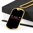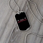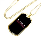 To personalize your gift with an engraving: Engraving Details : During checkout, use the 'Message to Seller' link on the order confirmation page to specify your engraving. Alternatively, message us after purchase with the details. For photos: Provide a clear, high-definition picture (1000x1000 pixels, max 5MB). Engraving Message : Write your special message within these guidelines: Character Limit : Up to two lines, with a maximum of 20 characters per line (spaces included). Formatting Rules : Engravings can include both capital and lowercase letters. Acceptable formats: a. Space between each letter (e.g., J L D). b. Period between each letter without spaces (e.g., J.L.D). c. Continuous string without spaces or periods (e.g., Jld). Note: Capital letters without periods or spaces are automatically lowercased. This high-quality Dog Tag Necklace is a perfect keepsake for yourself or a loved one. Crafted from durable surgical steel and coated with shatterproof liquid glass, this necklace stands out for its durability and aesthetic appeal. For those who desire a touch of luxury, an 18k gold finish option is also available. The water-resistant seal ensures that the vibrant colors and intricate details of the dog tag remain beautiful over time, no matter where life takes you. Each necklace arrives elegantly packaged in a jewelry gift box, making it the ideal gift for any special occasion, from Valentine's Day and Christmas to graduations and weddings. Proudly produced and personalized in the USA by our incredible working moms, we are committed to supporting strong communities and providing fair wages. Our team of talented mothers exemplifies exceptional craftsmanship, creating pieces destined to become family heirlooms. Customization Options: Make your necklace truly unique with custom engraving. Add a loved one’s name, a special date, or a meaningful message to the back of the dog tag pendant, creating a piece that is close to the heart. Product Specifications: Luxury Military Necklace: 24" (61cm) with upgraded clasp Dog Tag: 28.5mm x 51mm Benefits: Enhance your fashion with this Dog Tag Necklace, a seamless fusion of traditional aesthetics and modern artistry. With its durable construction , water-resistant properties, and elegant packaging, it makes for an exceptional gift for any occasion. Personalize it to create a treasured keepsake that speaks to the heart. Crafted in the USA by working mothers, each piece supports strong communities and ensures high-quality craftsmanship.