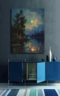 The Lakeside Golden Moon Night Paint Unframed Canvas Print Australian Wall Art