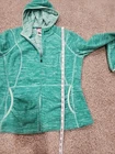 Jacket in excellent condition with no rips or stains. Measurements on photos. This North Face jacket for women is a must-have for any outdoor activity. The hooded and full zip design makes it perfect for fall, winter, and spring seasons. The jacket is made of 100% polyester and features a fleece fabric type with a solid pattern. It comes in a beautiful sea foam green color with a zipper and logo accent. The jacket is machine washable and has a regular fit. It is perfect for travel and casual occasions. The long sleeve and short length make it suitable for any height. Get this basic jacket now and enjoy the comfort and style it provides.