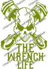 The Wrench Life,Mechanic,Gear Head,Wrenching,Skull,Pistons,Stickers,Vinyl Decal PatriotFitGear SIZE IS Approx.4.5"x6"and 9"x12" If you need a different size please ask. Decal is Vinyl Cut so it will be one single color. The vinyl is 3MIL, resistant to Sun, Rain, Snow & Sleet. The decal will stick to any hard, smooth surface and are suitable for wet locations (Boat, Car, Car Window, Laptop, Instrument Cases, Snowboard Decks, School Lockers, Mirrors, etc.) An application (transfer tape) overlay allows for precise and easy placement. All decals are computer cut and are customizable. HOW TO APPLY STEP 1: CLEAN THAT AREA GOOD! First make sure you have a dry place and no wind to install your decal. Make sure to prep the area, this is the most important part of installing a decal! If you put your decal or sticker on a dirty surface, it will just pick that dirt and grime up like a lint roller does your shirt, those aren't so sticky after you use them are they! So let’s make sure the area is nice and clean so that it can adhere to where you are going to place it. You can use soap and water, rubbing alcohol, or any other fast drying cleaner. My favorite is rubbing alcohol since it dries by itself within seconds and leaves no residue behind. On that note, do NOT use anything like Windex or other household spray cleaners that leave a residue behind or oily substance, that defeats the purpose and will cause your decal/sticker not to adhere to the best of it capabilities. STEP 2: DECIDE AND PEEL ! After you have cleaned your car, you now need to decide where you want to center your decal in the area you cleaned. I use a measuring tape to measure from different spots on the car to make sure I have it exactly where I want it and that it will not turn out crooked. When I measure I use a piece of masking tape to mark the measurements, normally four for left/right/top/bottom. Then I have a somewhat boxed area to force me to place the decal where it should go. Be aware after you stick it, you might cannot undo it and use it again, since it can separate the design or text from each other. After you decide where you want it, go ahead and start to peel your decal back, if it doesn't stick to the transfer tape the first pull, replace the transfer tape and push it together with your fingers or use a credit card to press together. STEP 3: PLACE THAT DECAL! So you cleaned your area and also decided how and where you are going to place your new decal or sticker and you made sure your decal can peel apart easily. FOR SMALLER DECALS - Now fully peel the decal off the backing and hold it on the tips of the masking/transfer tape. Try not to touch the back of the decal itself since it could leave dirt on your decals back side. You should have each hand holding the furthest corners from each other and keep it tight so that the decal does not fold in on itself. Place one end of the decal down and then smooth it out to the other end till the decal is fully placed. FOR BIGGER DECALS - Do not fully remove the backing on your decal. You will want to remove about 1/3 of the backing and start by applying that 1/3 of the decal to the car. Then slowly pull more of the backing off while at the same time apply the decal to the car until you have fully installed the decal. Either work left to right or right to left, which ever you feel best doing. Don't forget you can always buy a $1 spray bottle at your dollar store, put ONE small drop of soap in it and fill with water and shake. Then LIGHTLY (I MEAN LIGHTLY) spray the area and then apply the decal. This is only suggest for bigger decals or decals that you need to be in a precise area. STEP 3: THE HARDEST PART! Waiting... yes this is the hardest part, because most people are so impatient that they can't wait and they mess up the decal by removing the transfer tape too early! The best way to allow your decal to dry is out in the sun, having it in the shade or in a cool place will only make it take longer. If you used a mist of soapy water when installing your decal and do not let the sun dry it, then it will take a very long time before it adheres correctly, since nothing is there to remove the water and dry the decal to the surface. Do not try and rush this buy using a heat gun, you can melt the transfer tape and vinyl and when you peel it, it could cause the decal to stretch with the transfer tape. Again the best way is the sun. Finally just give the decal 30 minutes before you remove the transfer tape, go inside and eat lunch. By the time you’re done you should be able to go back outside and finish your decal and be in a good mood from that great lunch and nice cold sweet tea! If your decal is still not sticking, make sure you got it in the sun and it is warm outside, and just give it a bit longer. After ~30 minutes to dry, remove transfer paper.