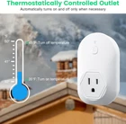 THERMOSTATIC CONTROL: This thermostat will automatically turn on the connected heaters when the outside temperature drops below 35°F, and turn it off when temperature reaches about 48°F. Perfect solution to the trouble of water freezing. Let you have a comfortable winter! SAVE TIME & MONEY: Automatic activation saves your time, no need to plug cable back and forth when temperature fluctuates. It uses power only when necessary, thus helps save a lot on your electric bill. EASY TO USE: No assembly required, plug-n-play. Just plug the thermostat into a power socket, and plug your 120V heating device into the thermostat outlet, you are ready to go. Suitable for both 3 prong and 2 prong plug. DURABLE & RELIABLE: Adopting UL listed and TUV-certified sensor, and covered with PC+ABS V0 grade flame retardant material, safe to use. The LED light shows whether the heaters is running, very convenient. WIDELY USE: With a maximum load of 16A, this temperature controlled outlet is widely used for pipe heat tape, roof heating cables, pond de-icers, bird bath heaters, automotive battery heater, chicken farm, dog house, pump house etc. Product Description Auto Thermostatic Control The temperature controlled outlet can effectively sense the ambient air temperature to turn on at 35 degrees Fahrenheit and off at 48 degrees Fahrenheit, saving energy and effort by using power only when necessary. Suitable for 3 & 2 Prong Plug Suitable for both 3-prong and 2-prong plug. Convenient for you to use in many different heating equipment. Safe & Convenient Adopting UL listed and TUV-certified sensor, and covered with PC+ABS V0 grade flame retardant material, safe to use. The LED light shows whether the heaters is running, very convenient.
