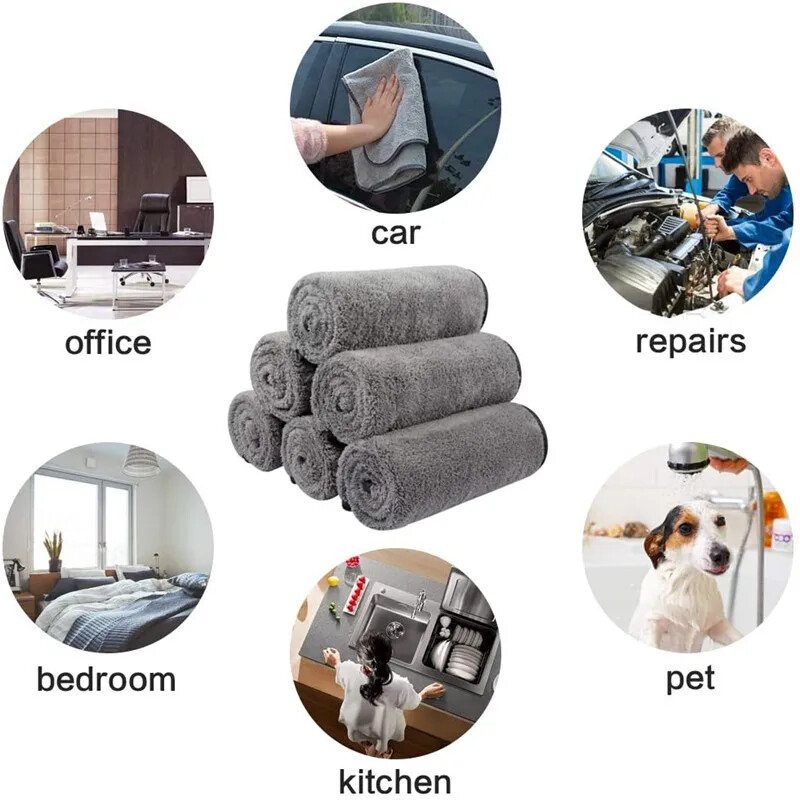 Thick Car Wash Microfiber towel Auto Cleaning Drying Towels Detailing Polishing Cloth Rags Car Care Wash for Kitchen glass Package Content: 1xCar Cleaning Towel 1.【Two-Layer Plush Microfiber】The water absorbing car drying towel have Two-Layer Plush Microfiber, which can absorbs two times more than traditional cleaning microfiber, so you can greatly reduce the drying time 2.【500gsm Super Absorbent】:icrofiber cloths' density up to 500gsm, High quality microfiber drying towles is super softy, absorbs moisture and quickly drying the surface of your car. With its softness greatly extends its durability and using life 3.【No Scratches No Fluff No Fading】Made of non-abrasive and premium 500 gsm double-layer plush microfiber,not leave scratches or lint on paintwork, glass or mirrors; no fading after first washing, are super softer, and reinforced silk edging make towel durable and long lasting 4.【Durable and Reusable】Can be machine washed and tumble dried. They are designed to extremely durable. High density can be repeatedly used,typically they can be washed several hundred times, no shrinking and no fade without losing quality, Saving you money and not having to change towels frequently 5.【Multi-Functions Use】The car wash towels drying capabilities can be used not only for automotive purposes,perfect to use windows, tiles, dishes, mirrors ,indoor or outdoor for washing, waxing, dusting, polishing and drying your vehicles and household wares