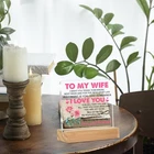 Return Policy Fast Delivery Trusted seller to My Wife Gifts, Wife Gifts from Husband, Anniversary Valentines Day Gifts I Love You Gifts for Her Wife Clear Desk Decorative Sign Home Decor Product Description Dimensions: You will receive a 4" x 4" clear sign and a 4" x 1.5" x 0.8" wooden stand, which is the perfect size to fit on your desk without taking up too much space. I Love You gift: This is a romantic sign, suitable as a love gift for any important occasion. It is a good choice when you don't know what gift to give. Material: It is made of acrylic material, which is transparent and clear, and the text and pattern are clear and beautiful. The base is made of solid wood, which is sturdy and durable. Widely use: This clear desk decorative sign is suitable for decorating different places. You can put it on a flat desktop, such as a desk, table, bookshelf, etc. It can also be used as a gift for various occasions, nodes and festivals, such as Valentines Day, wedding, anniversary, birthday, Christmas, etc. Easy to install: This acrylic tabletop decorative sign comes with a wooden base. It can be installed in one step and can be decorated anyw. Shipping Returns Payment Shipping Shipping is FREE to all addresses other than APO/PO boxes in the lower 48 states. All our stock ships from US-based warehouses. Shipped via USPS or UPS (depending on location and package weight) Unless stated otherwise, all orders will ship within 24-72 hours of your payment being processed. Check our feedback to see the great reviews of FAST shipping we offer. Returns Seller does not accept returns Payment We currently accept payment via eBay managed payments only. Once payment is cleared, we will dispatch your shipment within 1-3 business days. Please refer to the "Shipping" tab for more information regarding shipping speed to your destination.