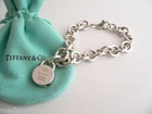 Offered for sale is a wonderful and very elegant Tiffany and Co. Sterling Silver 1837 Round Padlock Charm bracelet. The piece is made from substantial and bright Tiffany silver, and yet retains a very feminine feel to it. Attached to its very substantial Tiffany Silver charm bracelet is a fantastic and classic Tiffany 1837 Round Padlock charm. The padlock charm opens and closes and can thus be used on another necklace or charm bracelet - if you choose to do so. Super versatile piece! It is a classic Tiffany piece that will most certainly be a piece that you will be used over and over again, so it is great value for the money! It is a wonderful piece that fits a lifestyle on the go -- the bracelet can be worn to almost any occasion! It is versatile, elegant, and classic all rolled into one. Imagine the piece with your professional office attire ... Now imagine it with jeans or weekend wear ... Perfect! The bracelet is in good condition. As always, both the charm bracelet and padlock charm are fully hallmarked and guaranteed to be 100% authentic. Wonderful present for yourself or anyone you love! Will surely delight! It will come with its Tiffany pouch as shown! Perfect and ready for gifting! Particulars: Size & Measurements: The bracelet is approx. 7.25 inches from end to end. Metal & Hallmarks: Tiffany & Co. / 925 (on padlock charm) T & Co. / 925 (middle link of chain; clasp of charm) Solid 925 sterling silver Please check out my other unique and interesting Tiffany items on sale.