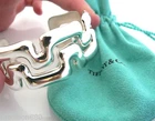 Overview: Offered for sale is a wonderful, super cool, and gorgeous Tiffany & Co Sterling Silver Puzzle Wide Cuff / Bracelet. Definitely a Tiffany piece that you will get your money's value for. It works perfectly with pretty much any attire your put on, AND is the perfect Tiffany statement piece. It is the perfect piece that fits a lifestyle on the go -- the cuff can be worn to pretty much any occasion! It is simple, elegant, and classic all rolled into one bracelet - it looks awesome worn alone, but is elegant and simple enough to complement your other jewelry pieces. Imagine wearing the cuff with your office attire... now imagine it with jeans or weekend wear ... Perfect anytime! It is a perfect Tiffany piece to start or add to your collection. As always, the item is fully hallmarked and guaranteed to be 100% authentic. Wonderful present for yourself or anyone you love! Will surely delight! Particulars: Size & Measurements: The cuff is 2.4 inches at its widest ends, with a 1.45 inch opening Metal & Hallmarks: Tiffany & Co. / 925 Solid 925 sterling silver Please check out my other unique and interesting Tiffany items on sale.
