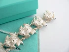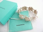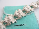 Feel like making a statement with your jewelry? Here's one that fits the bill wonderfully. Offered for sale is a gorgeous, very rare, and super awesome Tiffany and Co. Nature Frogs Link bracelet. A truly unique and awesome statement bracelet - you will be one of the few to own this piece (I am 100% sure of it!). It is the perfect piece to wear when you want to make a classy and elegant statement. This awesome piece is composed of bright and solid Tiffany silver formed in the shape of super cool Frogs linked together! Wonderful bracelet that fits a lifestyle on the go -- this piece can be worn to almost any occasion! Imagine the piece with your professional office attire ... Now imagine it with a little black dress ... One last, imagine it with jeans or a really cute sundress ... Perfect in every way! The item is versatile, very comfortable to wear, and is in excellent condition. A classic and perfect Tiffany piece to start or add to your collection. No longer in production, it is perfect for the collector. The item is fully hallmarked and guaranteed to be 100% authentic. It w ill come with its Tiffany pouch and box as shown! Perfect and ready for gifting! Wonderful present for yourself or anyone you love! Will surely delight! Particulars: Size & Measurements: The bracelet is 7.5 inches from end to end. Metal & Hallmarks: Tiffany & Co. / 925 Solid 925 sterling silver Please check out my other unique and interesting Tiffany items on sale.