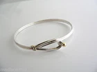 Overview: Offered for sale is a wonderful Tiffany and Co. Silver and 18K Gold Hook and Eye Bracelet / Bangle. The bangle is made from solid Tiffany silver and 18K gold, allowing you to combine the piece with almost any other piece of jewelry you already own. The style is classic Tiffany, making it a piece that you will most certainly use over and over again. It is very comfortable to wear, and is in excellent condition. Great piece to wear to work, or for just going to dinner with friends in jeans or a pretty dress. A great Tiffany piece to start or add to your collection. The bracelet is fully hallmarked and is guaranteed to be 100% authentic. Wonderful present for yourself or anyone you love! Will surely delight! Particulars: Size & Measurements: The widest part of the bangle is approx. 2.5 inches. Metal & Hallmarks: Tiffany & Co. / 925 / 750 Solid 925 sterling silver and 18K solid gold Please check out my other unique and interesting Tiffany items on sale.