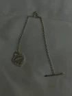 This sterling silver bracelet features a sterling silver arrow-shaped toggle closure that makes a perfect pair with the iconic heart tag. Sterling silver, size large, 7 inches long, motif size, small, toggle closure. Pre-owned but still in good condition. Comes with an original Tiffany Box and white ribbon. Original price is $285.