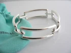 Overview: Offered for sale is a wonderful and gorgeous Tiffany & Co. Sterling Silver 7.5 inch Rectangle Link Chain bracelet. Definitely a Tiffany piece that you will get your money's value for. It works perfectly with pretty much any attire your put on, AND is a great statement piece. The Rectangular Links are not only very substantial, but also have a very cool, cosmopolitan and modern look and feel to it. It looks fabulous worn alone, or with other jewelry pieces. Very versatile piece indeed! The very cool thing about this bracelet is that the clasp links in a seamless way - it looks like a continuous rectangular link all the way around! This piece is simple, elegant, and classic all rolled into one bracelet. Imagine wearing the piece with your office attire... now imagine it with jeans or weekend wear ... Perfect anytime! It is in very good condition and is no longer in production. It is a perfect Tiffany piece to start or add to your collection. As always, the item is hallmarked and guaranteed to be 100% authentic. Wonderful present for yourself or anyone you love! Will surely delight! Particulars: Size & Measurements: The bracelet is approx. 7. 5 inches from end to end. Metal & Hallmarks: 2002 / Tiffany & Co. / 925 / Italy Solid 925 sterling silver Please check out my other unique and interesting Tiffany items on sale.