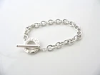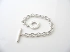 Offered for sale is a wonderful and gorgeous Tiffany & Co. Sterling Silver Toggle bracelet. Definitely a Tiffany piece that you will get your money's value for. It works perfectly with pretty much any attire your put on, AND is an awesome statement piece. Looks great worn alone, stacked with other bracelets, or you can add your own charms to personalize the piece! Classic Tiffany statement piece! It is the perfect necklace that fits a lifestyle on the go -- the piece can be worn to pretty much any occasion! It is simple, elegant, and classic all rolled into one. Imagine wearing the bracelet with your office attire... now imagine it with jeans or weekend wear ... Perfect anytime! It is a perfect Tiffany piece to start or add to your collection. As always, the item is hallmarked and is guaranteed to be 100% authentic. Wonderful present for yourself or anyone you love! Will surely delight! Particulars: Size & Measurements: The bracelet is approx. 7.5 inches. Metal & Hallmarks: Tiffany & Co. / 925 Solid 925 Sterling Silver Please check out my other unique and interesting Tiffany items on sale.