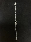 THIS IS A TIFFANY AND CO. STERLING SILVER INFINITY BRACELET. IT HAS A LARGE INFINITY CHARM IN THE MIDDLE AND ON THE OPPOSITE END, A LOBSTER CLAW CLASP WITH A CIRCULAR TAG STAMPED “TIFFANY AND CO.” AND “AG 925”. THERE IS MINIMAL WEAR TO THIS PIECE. PLEASE SEE PHOTOS BEFORE YOU PURCHASE.