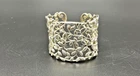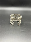 The Tiffany's Paloma Picasso® Olive Leaf Cuff is a bracelet made by Tiffany & Co. It is a cuff-style bracelet made of sterling silver with a leaf shape and a peace theme. The bracelet is designed by Paloma Picasso and is part of the Tiffany & Co. Paloma Picasso collection. The bracelet is silver in color and is size small, but it is resizable. Currently selling for $1,900! The cuff is almost 2" thick and comes with Tiffany's signature blue pouch. Product number: 60021868