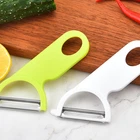 Bullet Points: Broad Use: This vegetable peeler is expertly created for smooth and curved surfaces, making it versatile for use on multiple fruits and vegetables. Its non-clogging cutter ensure effortless peeling, while pointedness retention ensures long-lasting performance Dependable Performance: Crafted with carbon steel for no discoloration and dependable performance, it features a sturdy handle ensuring long-lasting use Innovative Guard Peeler: This vegetable peeler ensures injury prevention with its innovative guard feature. Enjoy a stable and safe grip while peeling with the comfortable handle. Easily hand-washable for effortless maintenance Long-Lasting Sharpness: Save time in the kitchen with this vegetable peeler's great pointedness. Its sturdy handle ensures long-lasting performance and minimal maintenance, delivering efficient peeling with every use. Experience high-quality results without the stress Smooth Use: With its tilted head design, our vegetable peeler enables efficient and effortless peeling, avoiding food waste and minimizing hand fatigue. Its advanced mechanism glides through any shape or size of produce, making it perfect for any kitchen This versatile peeler delivers dependable performance and efficient peeling. Enjoy long-lasting sharpness with its stainless steel material. Hand washable for convenience. Specifications: Name: Peelers for Kitchen Material: PP Color: green, white Product weight: about 12g Packing List: 1 x Peelers for Kitchen Notes: 1. Due to the different monitor and light effects, the actual color of the item might be slightly different from the color which is showed in the pictures. 2. Please forgive a slight measuring deviation due to manual measurement.