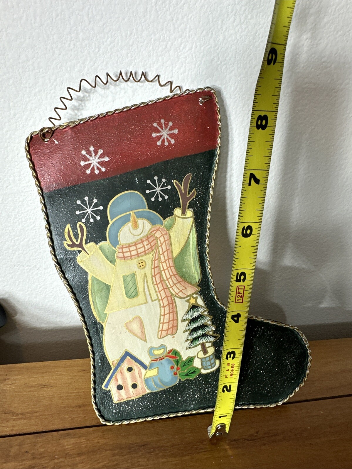 Add a touch of holiday cheer to your home with this beautifully crafted Tin Metal Ornament Christmas Stocking. The stocking features a 3-D hand-painted wire hanger with a snowman design, perfect for hanging on your fireplace mantel or anywhere else in your home. The botanical pattern and multicolor design make this stocking a great addition to any Christmas decor. Made of high-quality tin material, this Christmas stocking is durable and long-lasting. It's small in size, making it perfect for adults and children alike. This stocking is sure to bring joy and happiness to your home this holiday season.