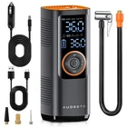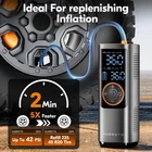 【5X Fast Air Compressor】Vehicle-customize rechargeable battery tire inflator portable air compressor (insert 25mm hybrid electric machine), output airflow 50L/Min continually, inflate Pickup and SUV tire (29-36 PSI) in 60s, 5x ultra faster than other similar product, supplement tire pressure in summer and winter when camping and picnicking, simultaneously save your time. 【Ultra Fast 7800mAh Battery】This A1 air pump for car tires is equipped with 7800mAh super power Hybrid EVE battery(Global Battery Ranking No. 5), this High Density Energy Battery can work continuously for close to 1 hour(real time measurement) , which can refill three and a half tires for SUV, 4 tires for car. Portable cordless design is convenient to keep it in your car. 【Multi-function Air Pump】Our portable air compressor has 5 inflation modes (bicycles, motorcycles, cars, balls and customized mode), for all terrain vehicle, caravans, trailer tire as well, and 4 preset units (PSI, KPA, BAR,KG/c㎡). Once reaching the preset pressure value, the portable air pump will automatically stop to ensure tire pressure monitoring system(TPMS) safety. 【Hybrid Power Tire Inflator】This air compressor for car is equipped with an 20'' high-strength vehicle-grade nylon material air pressure hose, higher heat dissipation and toughness strength,insert cooling fan with 4 regions of special dissipation holes design, effectively extended life span. 【Multi-functional 4 in 1 Device】The functions of this car tire air pump portable are Inflation, Power Bank, Flashlight, and Cigarette lighter port charging, 2 kinds of lights( LED, SOS) for the dark night and emergency situations, it can not only be used wirelessly but also use the car cord to inflate it when it has no power(with a DC cable).