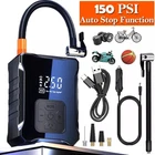 Features : QUICK ACCURATE : Th is a portable tire inflator for car, trucks, SUVs, motorcycles, and bicycles. Quickly inflate your vehicle's tires in just minutes with precision accuracy up to 150 PSI. Small and compact car air pump that fits in your glove box or trunk. FAST INFLATING SPEED and EASY TO USE : Simply plug this auto tire air compressor into the 12V power outlet and attach the hose to the tire you wish to inflate. You can just flip the switch, then shut it off once the tire pressure hits your desired number. 11.5 FEET-LONG RANGE : Besides, the 11.5 ft power cable is long enough to reach all the tires easily. A long cable eliminates needs to unplug it each time. 4 Extra Nozzles : Our tire pump has 4 extra nozzles which allow to inflate all types of tire, such as car, motor, ATV, or midsize SUV, sports equipment and inflatables adaptors included. Perfect for your inflatable boats, balls and other inflatables. PORTABLE & CONVENIENT : The portable air pump with a compact design that measures only 12.1*8.7*4.9cm, much smaller and lighter than a conventional air pump. Powered by rechargeable lithium batteries. You could put it in your pocket, backpack, or car to help you anytime and anywhere.This portable electric pump will get you covered if you are in an emergency! The built-in 2×1800 mAh lithium battery can be used as a power bank for IOS and Android devices. Specifications: Material: ABS Inflation Pressure Range: 0.2-10.3Bar / 3-150PSI. Cylinder Inner Diameter: 17mm Operating Current: ≤6A Working Voltage: 7.4V Power: 90W Type-C Input: 5V/1A. USB Output: 5V/1A Battery: Built-in lithium battery 1800mAh*2 Air Volume: about 18L/MIN. Inflating Efficiency: 195/65/R15 tires, cigarette lighter ≤12min, lithium Battery ≤11min. Life of the whole machine: ≥150 times (195/65/R15 tires. 0-36PSI, every cycle interval is 5 minutes) Measurement Error: ±1psi Working Temperature: -20℃ ~ 60℃ Size: 12.1 * 8.7 * 4.9cm. Certificate: CE/FCC/ROHS/UL/MSDS Applicable Models: Cars, electric cars, motorcycles, bicycles, ball games, etc. Product Lis t : 1 x Inflatable Pump 1 x Cigar Lighter 4 x Inflatable Nozzle 1 x Inflatable Tube 1 x Type-C Charging Cable 1 x Flannel Bag 1 x Instruction Manual