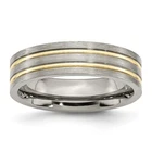 Finish:Polished & Brushed|Plating:IP-Plated|Band Width:6 mm|Material: Primary:Titanium|Ring Fit:Standard|Sizeable:No|Thickness:< 2 mm|Item Weight U/M:gm|Width of Item:6 mm|Engravable:Yes|Packaging:Gift Pouch|Product Type:Jewelry|Jewelry Type:Rings|Sold By Unit:Each|Gender:Unisex|Texture:Grooved|Material: Primary - Color:Grey|Ring Type:Wedding Bands|Edge Type:Flat|Plating Color:Gold Tone|Ring Shape:Flat All weights and measurements are approximate and may vary slightly from the listed information. Welcome to diamond_6720 Payments We accept all Ebay approved payment. Please sent the payment to us within 8 days after the auction has ended, or you will have unpaid case auto open by eBay. Shipping Policy We will ship all items within 1 business days of purchase during the work week (M-F) excluding holidays. If you order on Friday, your order will be shipped the following business day. Tracking will be provided when it becomes available. We will only ship to a PayPal Verified Address. Please make sure your address is current and correct. If the information does not match, your order may be canceled. Buyers are responsible for all customs, duties and taxes for your respective countries. Delivery times for International Shipping will vary. California Buyers Pay 9.0% Tax on all orders. case auto open by eBay. Return Policy & Exchange Returns or Exchange are accepted. Buyer must contact us within 30 days after the item is received. Item must be returned in unworn and resalable condition. We will only issue a refund for the purchase price, excluding any shipping fees. If we are at fault, we will provide a full refund. Buyer is responsible for all return shipping costs. BUYERS FEEDBACK If you have any concerns regarding your purchase, please contact us via eBay Message, we assure you that a satisfactory resolution will be reached. Your feedback is very important to us Do remember to give us 5 star rating(*****) if you are satisfied with our product & service .