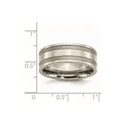 Finish:Polished & Brushed|Band Width:8 mm|Material: Primary:Titanium|Ring Fit:Standard|Sizeable:No|Thickness:< 2 mm|Item Weight U/M:gm|Width of Item:8 mm|Engravable:Yes|Packaging:Gift Pouch|Product Type:Jewelry|Jewelry Type:Rings|Sold By Unit:Each|Gender:Unisex|Texture:Grooved|Material: Primary - Color:Grey|Ring Type:Wedding Bands|Edge Type:Flat|Ring Shape:Flat All weights and measurements are approximate and may vary slightly from the listed information. Welcome to diamond_6720 Payments We accept all Ebay approved payment. Please sent the payment to us within 8 days after the auction has ended, or you will have unpaid case auto open by eBay. Shipping Policy We will ship all items within 1 business days of purchase during the work week (M-F) excluding holidays. If you order on Friday, your order will be shipped the following business day. Tracking will be provided when it becomes available. We will only ship to a PayPal Verified Address. Please make sure your address is current and correct. If the information does not match, your order may be canceled. Buyers are responsible for all customs, duties and taxes for your respective countries. Delivery times for International Shipping will vary. California Buyers Pay 9.0% Tax on all orders. case auto open by eBay. Return Policy & Exchange Returns or Exchange are accepted. Buyer must contact us within 30 days after the item is received. Item must be returned in unworn and resalable condition. We will only issue a refund for the purchase price, excluding any shipping fees. If we are at fault, we will provide a full refund. Buyer is responsible for all return shipping costs. BUYERS FEEDBACK If you have any concerns regarding your purchase, please contact us via eBay Message, we assure you that a satisfactory resolution will be reached. Your feedback is very important to us Do remember to give us 5 star rating(*****) if you are satisfied with our product & service .