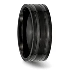 Titanium Brushed and Polished Black IP-plated 8mm Grooved Band Ring Size 11